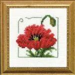 | | This is a complete kit, including even-weave fabric, floss, needle, chart, and complete instructions. The design fits a 4×4 inch frame (not included) | |